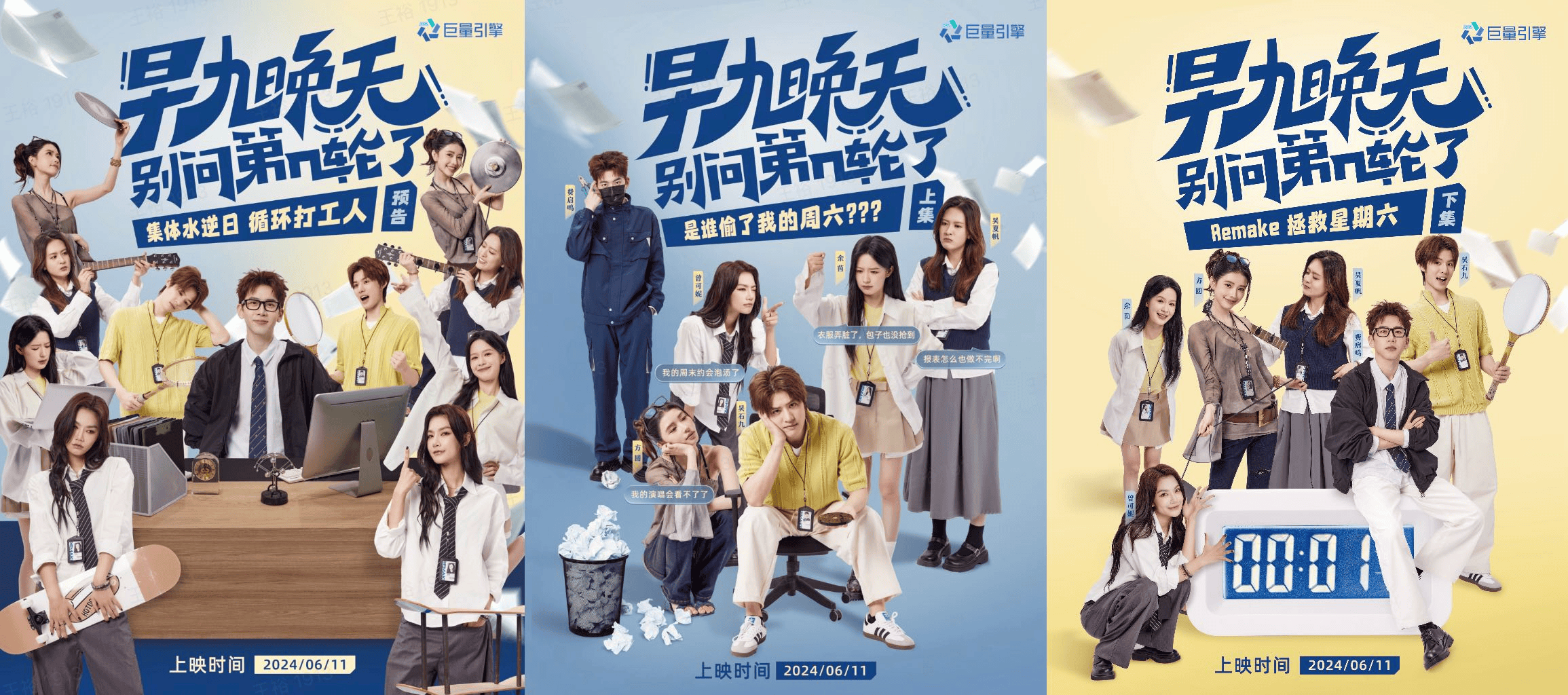 #过不完周五怎么办既是打工人共鸣话题更是剧情主题,工作日时间循环噩梦太痛了,集体水逆、200页PPT直戳现代人肺管子,被偷走的周六遥遥无期,费启鸣、曾可妮、方圆、吴夏帆、余茵、吴石九一众爆火演员加持,这短剧味儿太正了!