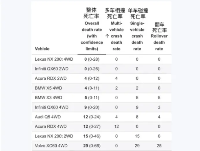 但最让网友和车迷觉细思极恐的还是2023年美国IIHS公布的报告:沃尔沃XC60(2014-2017款)车型的死亡率在同级豪华SUV中最高,这在当年也引起全网对沃尔沃安全的担忧。