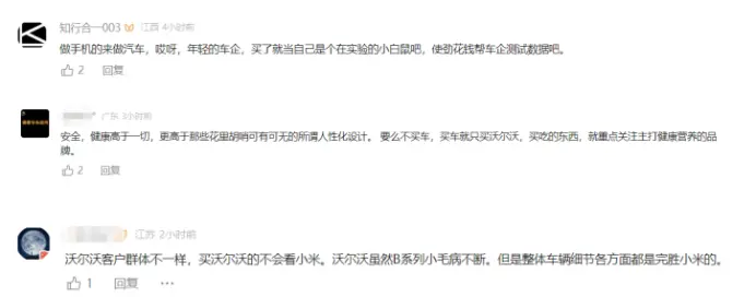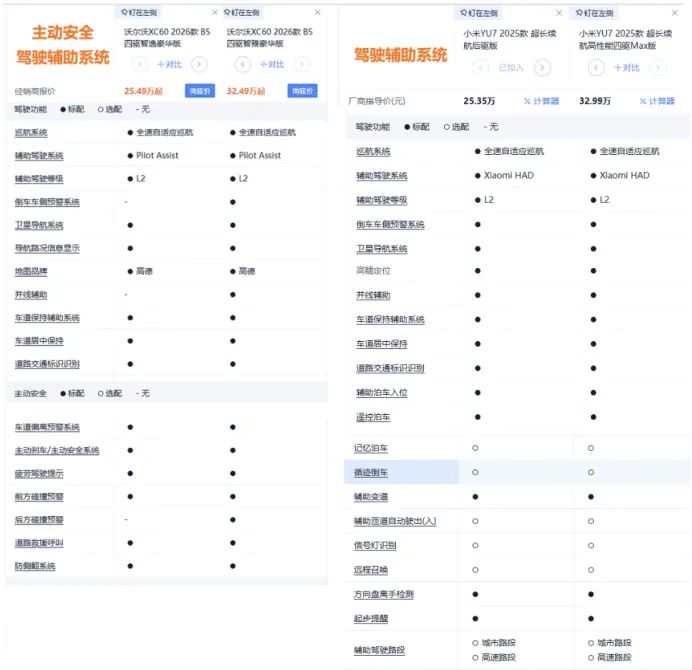 举一个蹭热点的例子:26万买沃尔沃XC60能获得一辆安全的高端座驾,若买小米YU7则在此基础上还能成为流量的受益者。两相对比,尔沃XC60的智能安全确实匮乏,因此于科鑫在发布会上所言的“安全物超所值、旗舰标准一步到位”有些名不副实;袁小林曾表达的“豪华不是参数的堆砌,车企必须对用户负责”也显得没有说服力。