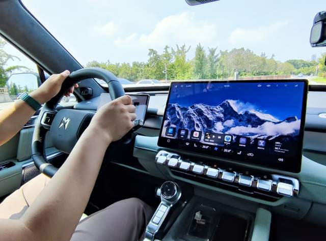 踩下油门,1.5T插混系统爆发的505kW综合功率和848N·m扭矩绝非虚言,5.2秒破百的推背感在如此大块头上显得尤为“暴力”。两挡纵置11模PHEV架构和分布式解耦四驱,提供了燃油、纯电、增程、插混等9种驱动模式。城市路况纯电足够安静平顺;切换至混动或运动模式,动力响应迅猛直接,高速超车信心十足。CLTC 1300km综合续航是长途穿越的底气。