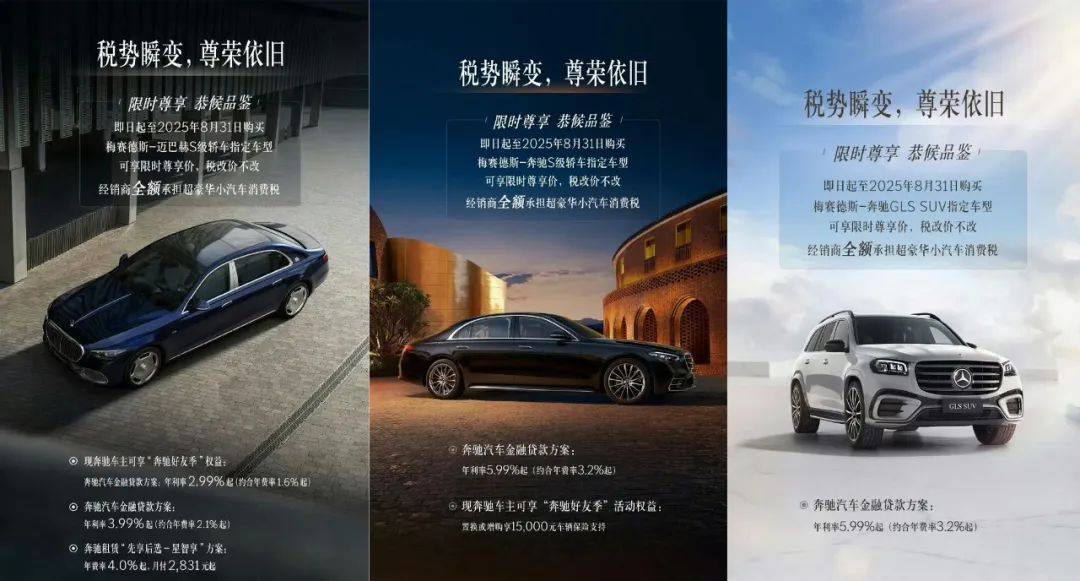 的经销商也放出了类似的政策,购买迈巴赫、奔驰S级、指定车型,在8月31日前,奔驰的经销商将全额承担新增豪车消费税。