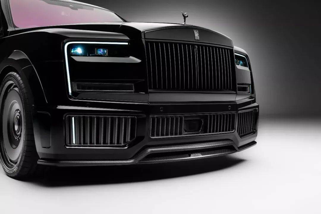 这款库里南配备一套全面套件,由40多个部件组成。其中包括与车身同色的碳纤维引擎盖、全新设计的碳纤维前包围、垂直LED日行灯,以及熏黑格栅,让前脸看起来更锐利、更具气势。