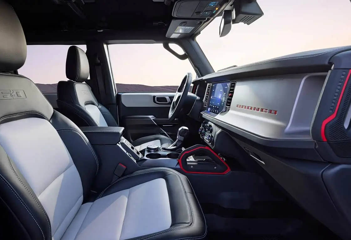 动力方面,新车基于Outer Banks版本打造,标配2.3T EcoBoost发动机(最大功率224千瓦、峰值扭矩440牛·米),可选2.7T V6发动机(246千瓦、562牛·米),均匹配10速自动变速箱,部分版本提供6速手动变速箱(带专属攀爬挡)。全系搭载Sasquatch套件,包含高离地间隙悬架、电子锁止前后差速器、FOX氮气减振器等硬核配置,四驱性能进一步强化。