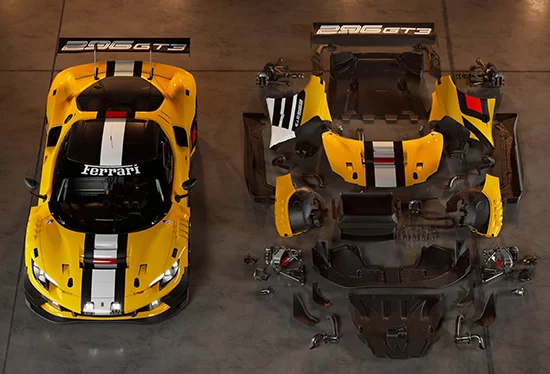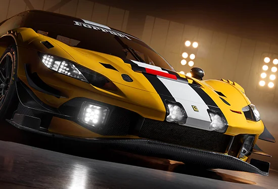 动力部分,法拉利296 GT3 Evo搭载代号为F163CE的120°夹角3.0T V6涡轮增压发动机。发动机缸径88mm,冲程82mm,最大马力608Ps,最大扭矩710N·m,传动系统匹配6速横向序列式变速箱。