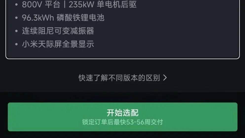按照小米APP的最新显示,小米YU7的3个版本,提车周期最短的也要33周,也就是0.63年。6月28日时显示,标准版提车周期预计53-56周,Pro版提车周期预计48-51周,Max版提车周期预计33-36周。