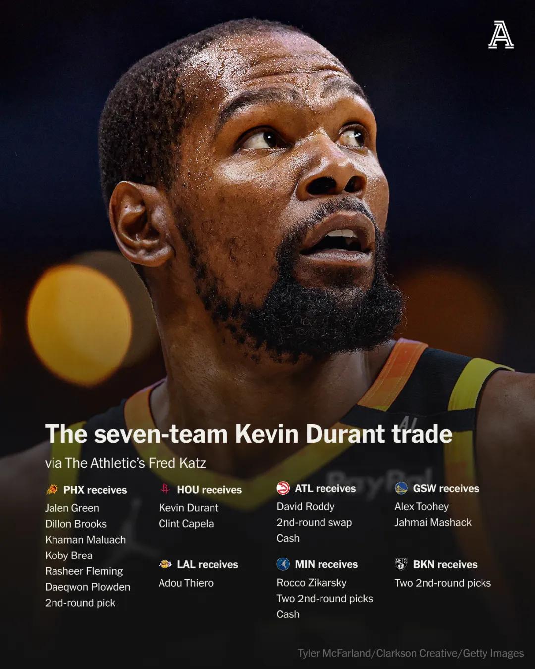 火箭得到杜兰特(太阳)和卡佩拉(老鹰);