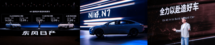 在产品上市发布会中,东风日产N7再次突破传统汽车发布会的框架,对标主流新势力发布会形式,由品牌高管亲自主讲,以“场景化”“简约化”“具象化”的呈现方式,打造了一场聚焦家庭出行解决方案的提案会。其核心亮点在于精准锚定家庭用户需求,通过技术破圈、场景重构、情感共鸣三大维度实现品牌价值与产品力的深度传递。最后更是通过超越用户期待的惊爆价格,打破用户对合资品牌的刻板印象,为合资品牌新能源转型提供了“技术+温度”的双轮驱动范本。
