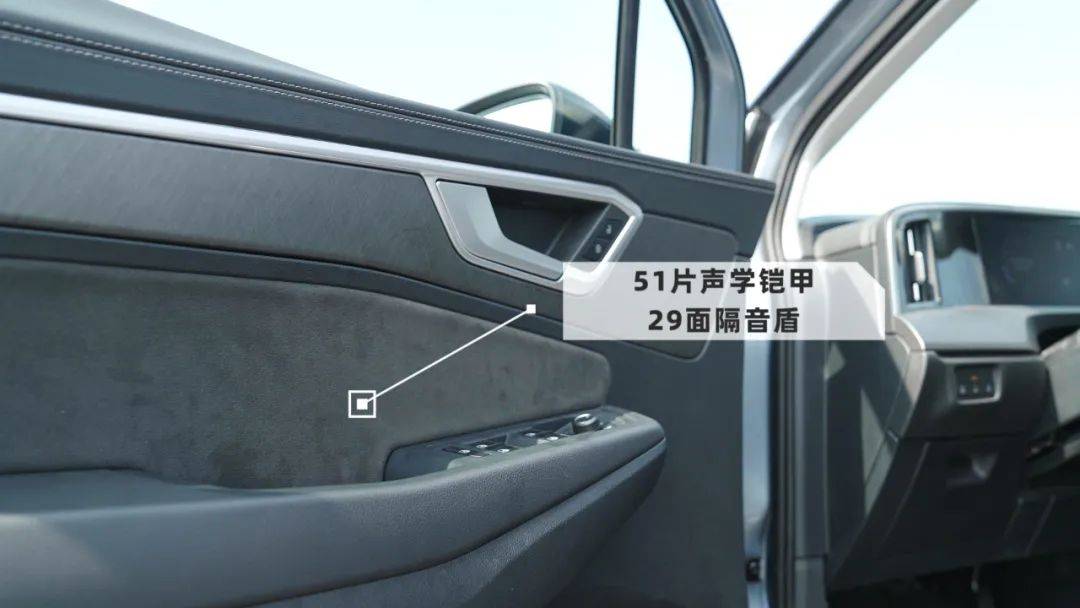 更关键的是,整车NVH表现也很出色,我们在上海长江大桥高速下实测车内仅59.5分贝,这背后,是51片声学铠甲+29面隔音盾的硬实力。