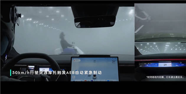 全系标配速腾聚创M1 PLUS激光雷达(探测距离200m,精度<3cm),配合11摄像头+5毫米波雷达+12超声波雷达,实现360°无死角监测。领克10 EM-P在夜晚浓雾交叉路口,成功挑战AEB Pro精准识别盲区车辆、行人并稳稳刹停,并且在摩托车横穿马路的时候触发AEB紧急制动,避免了事故。