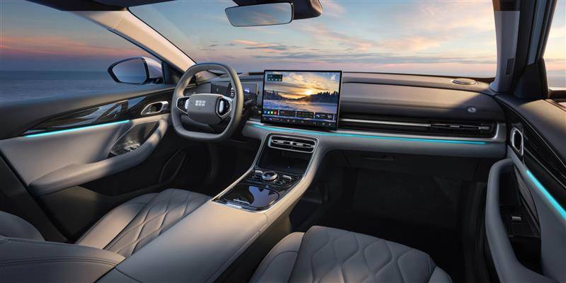 内饰部分,银河A7则简洁风格的座舱设计以营造越级的档次感与居家氛围。新车全系标配10.2英寸全液晶仪表屏。除两款低配车型采用14.6英寸中控屏外,其余五款中、高配车型均搭载15.4英寸2.5K分辨率高清悬浮式中控屏。顶配150km星舰版还配备16.6英寸W-HUD抬头显示系统(150km探索+版可选配2500元升级包),为用户打造出了清晰、立体的视效空间。