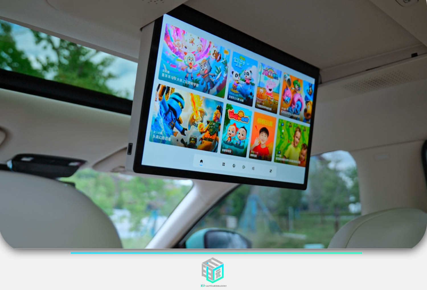 我个人最喜欢的就是它的座椅,填充物特别厚实,既有支撑又有回弹,包括它的头枕也是航空级别的头枕,是有一定曲度的。主驾位置还配备了头枕的音箱。第二排坐垫要比前排填充物更厚实,坐垫长度也基本可以承托整个大腿。中央扶手箱下面是一个冷暖箱,体积并不是很大,基本是装三四瓶矿泉水。L8还配备了15.6英寸的吸顶屏,前排可以去三指滑动,把中控屏上的东西投到这边来。